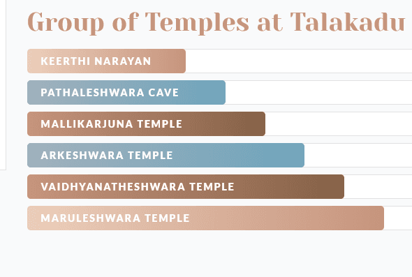 This temple has the largest linga among the Talakadu panchlinga’s temples. It is also one of the oldest in the history of Talakad built by Ganga kings. It has believed that Brahma himself has installed the shivaling here. Maruleshwara temple is nearby from Keerti Narayan Temple. To worship the deity, stairs of 20 to 30 is taken to walk down. The temple also has the idol of other god named Maheswara, Thirumal, Ambigai, Surya, Ganapathi, Shanmugar, Veerabadhrar, and Navagrahams.